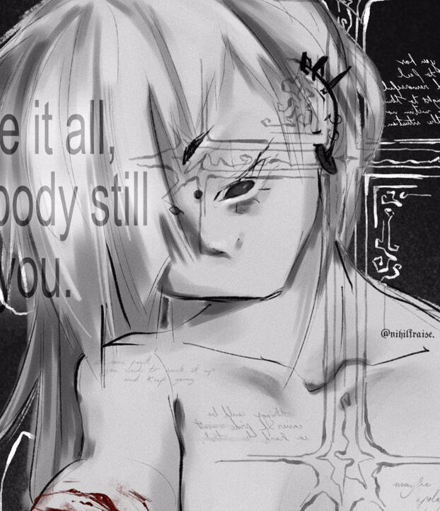 that being said, please be aware that my account deals with sensitive subjects from time to time. content warning for: horror, gore, depictions of self-harm and mental illness, suggestive imagery and possible nsfw (nudity, depictions of sexual themes).